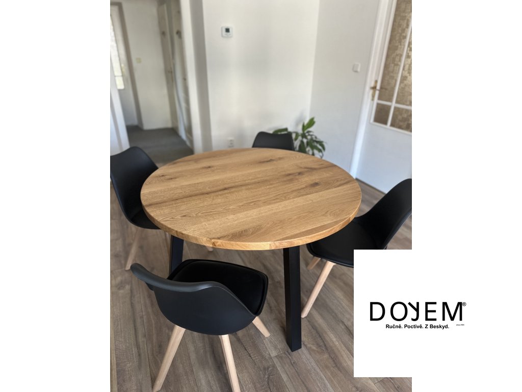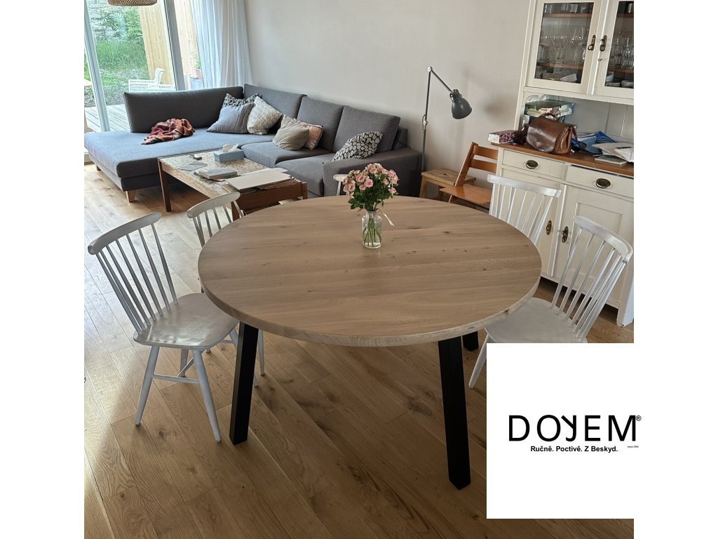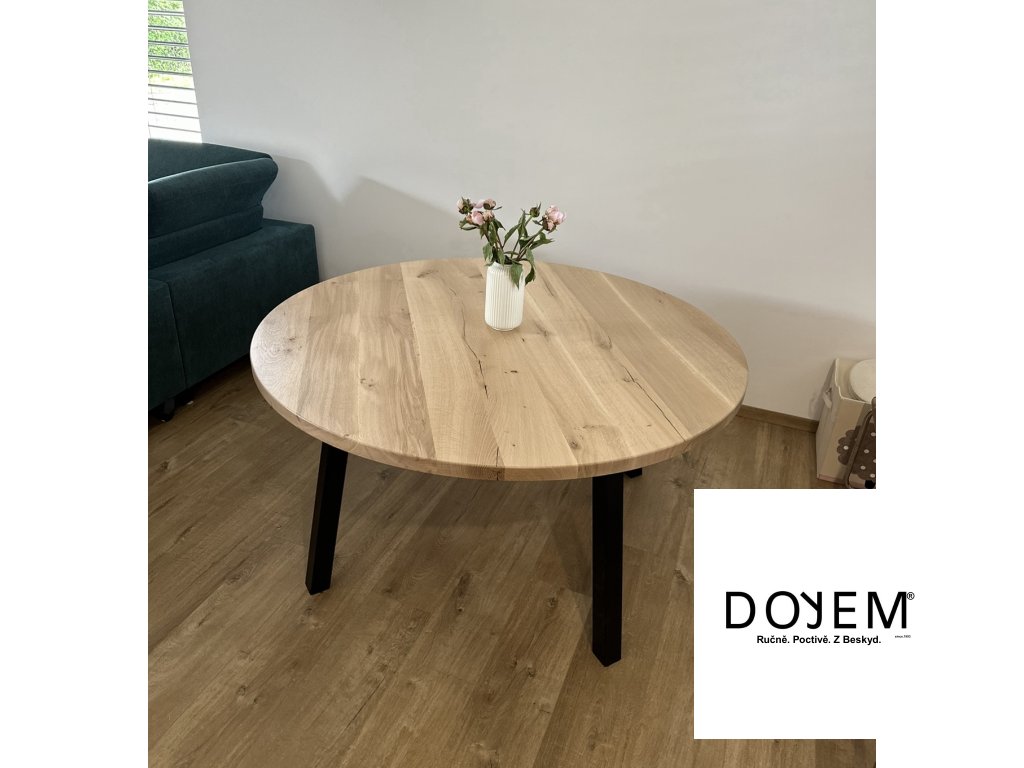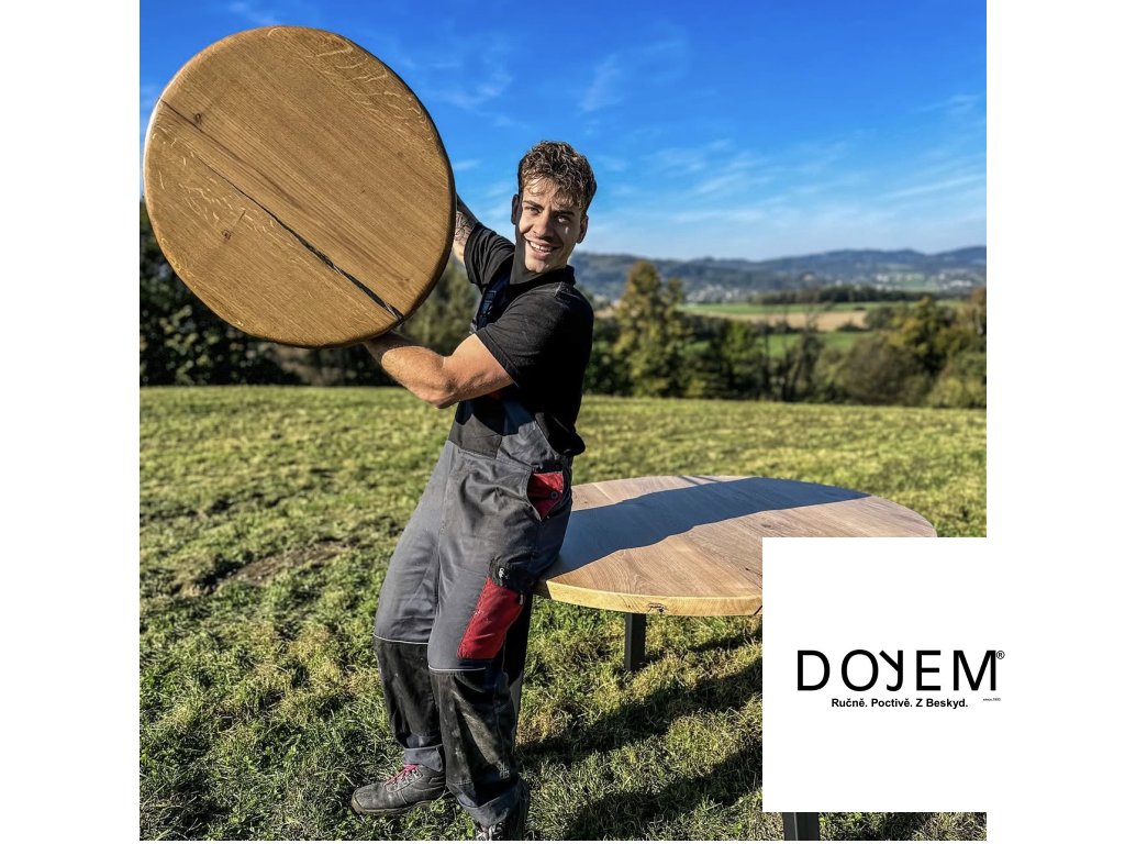 Kulatý stůl od DOYEM není jen o designu. Je to poctivý kus nábytku, který vydrží celý život. Každá deska nese charakter dřeva – suky, jemné prasklinky či kresbu letokruhů. Na přání vám vyrobíme stůl i z výběrového dřeva s minimem sukovitosti.