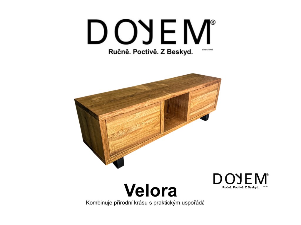Skříňka VELORA je vyrobena z plného 4cm dubového masivu, který zaujme nejen svou pevností, ale i neodolatelnou kresbou dřeva. Tento kousek není jen nábytkem – je vyjádřením vkusu a stylu. Díky minimalistickému provedení a čistým liniím přirozeně zapadne jak do moderních, tak i klasických interiérů.