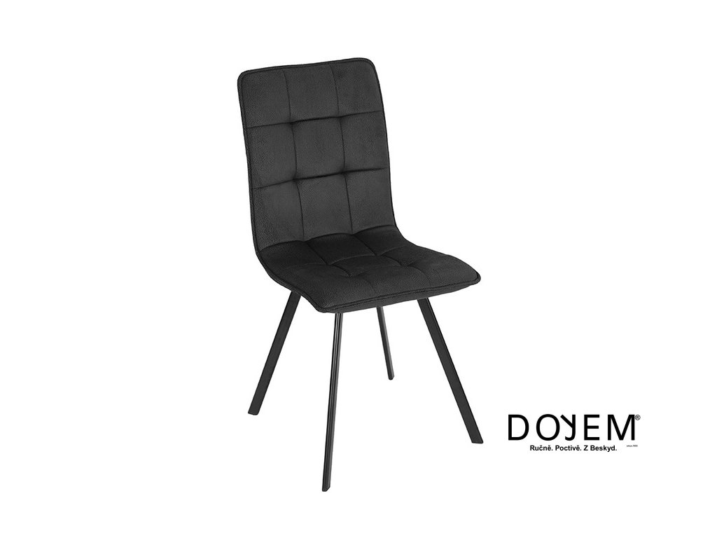 Moderní jídelní židle. pevná kovová podnož a celočalouněná, prošívaná sedací část.